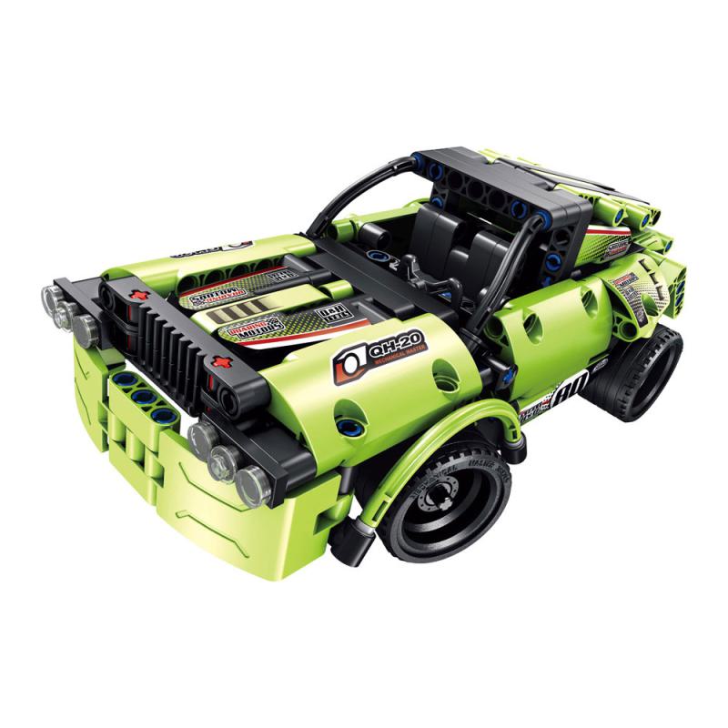 Bau- und Fahrspaß in Einem? Mit den QIHUI-Modellen aus der Mechanical Masters-Reihe ist beides möglich. Aus 335 Teilen entsteht ein Rennwagen mit schnittigem Äußerem, der mit seinen überwiegend grünen und schwarzen Teilen eine Augenweide darstellt. QIHUI bietet euch mit dem 8020-Bausatz zusätzlich eine zweite Bauvariante an, dieser Wagen ist etwas kompakter und weniger sportlich als die erste Version. Eure favorisierte Autovariante könnt ihr anschließend dank Fernsteuerung draußen oder in der Wohnung ausprobieren.