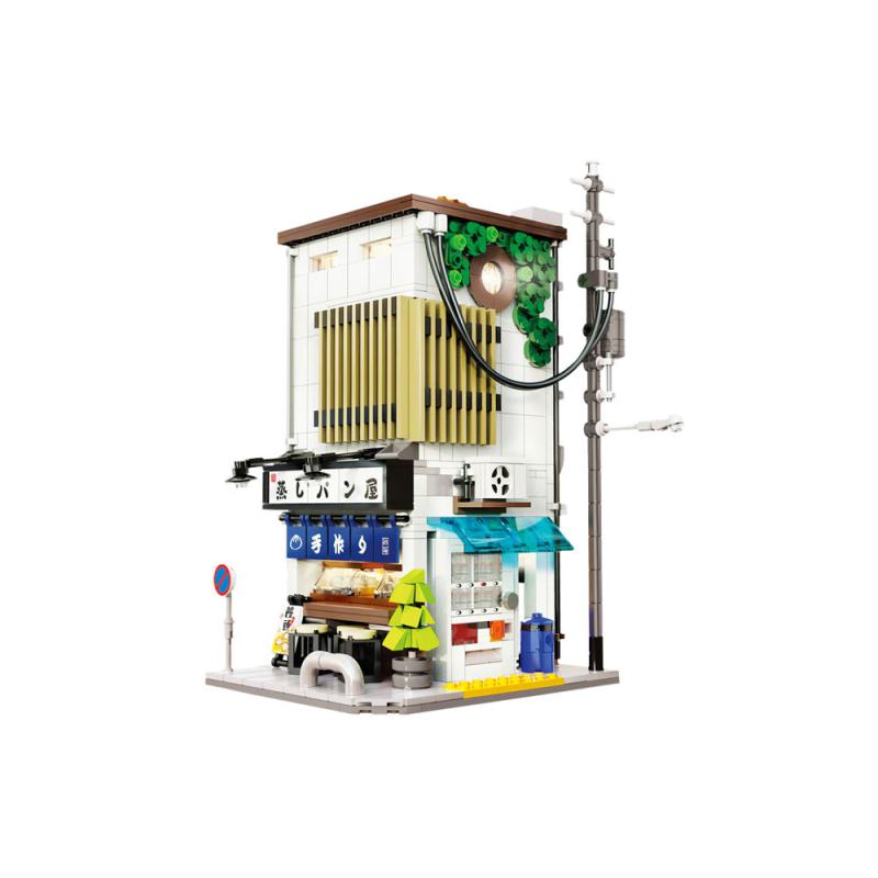 Urbane japanische Bäckerei mit Strassenverkauf und Wohnbereich.