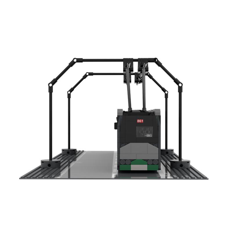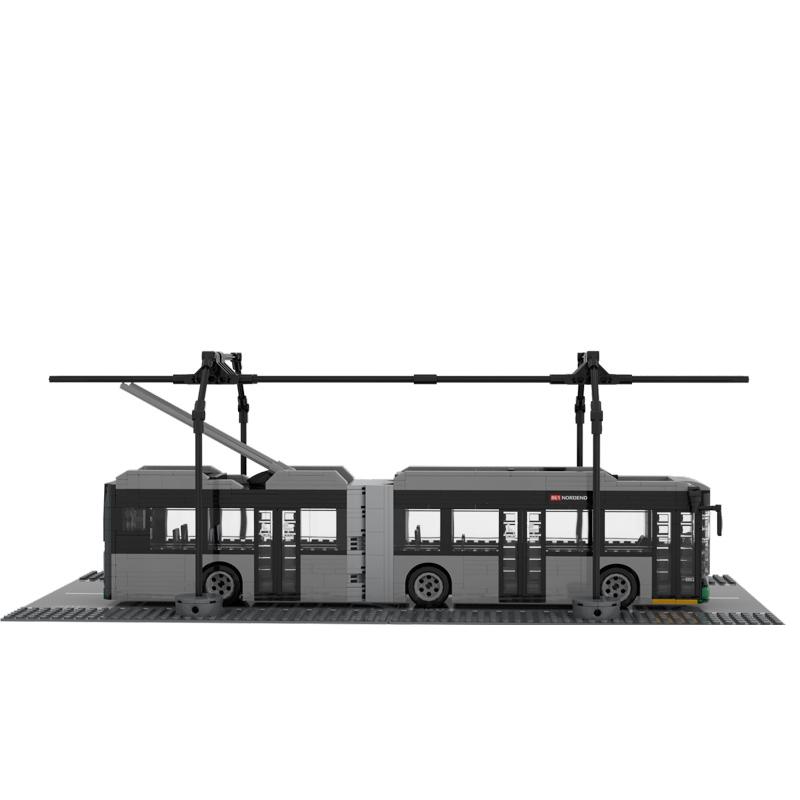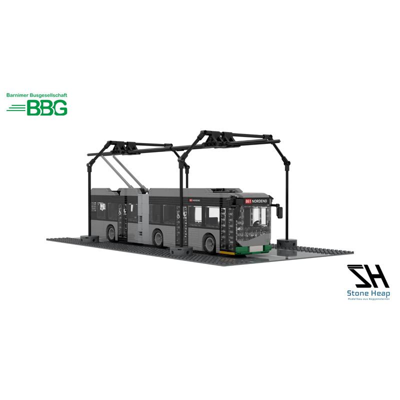 Eberswalde, die Kreisstadt im Bundesland Brandenburg, ist zusammen mit Solingen und Esslingen am Neckar eine der drei Städte in Deutschland, in denen Oberleitungsbusse im regulären Linienverkehr fahren. Der heute von der Barnimer Busgesellschaft (BBG) betriebene O-Bus-Verkehr wurde 1940 eröffnet und stellt den ältesten aktiven O-Bus-Verkehr in Deutschland dar. Die O-Bus-Flotte der BBG befördert heute jährlich etwa 4,2 Millionen Fahrgäste. Die BBG begeht das 85-jährige Jubiläum des O-Busses unter anderem mit einem detailgetreuen Klemmbausteinmodell eines Oberleitungsbusses der neuesten Generation, der 2024 in Betrieb genommen wurde. Bei dem „Trollino 18 Kiepe IMC“ handelt es sich um ein niederfluriges Fahrzeug des Herstellers Solaris aus Polen, das im original eine Länge von 18 Metern aufweist. Der Stromabnehmer lässt sich automatisch anbringen und abziehen.